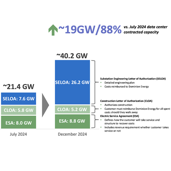 Dominion Energy reported demand growth from data centers in its territory and that its CVOW offshore wind project was more than halfway complete on its second quarter earnings call.