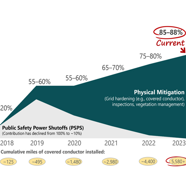 Independent measures show Southern California Edison has sharply reduced its financial risk from catastrophic wildfires compared with pre-2018 levels, Edison International CEO Pedro Pizarro said.