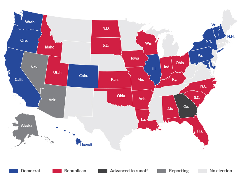Democrats backing aggressive climate policies won or were leading in eight of 12 of the most contested gubernatorial races after voting Tuesday.