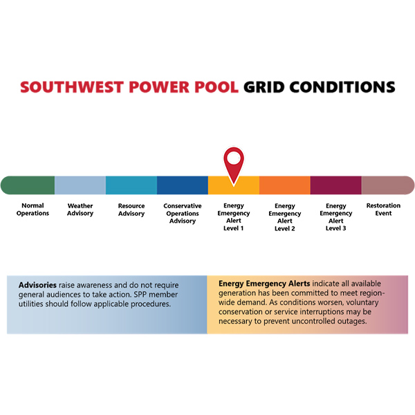 SPP issued a Level 1 energy emergency alert Aug. 26, saying widespread high temperatures in the Great Plains led to tightening reliability conditions in its 14-state balancing area authority.