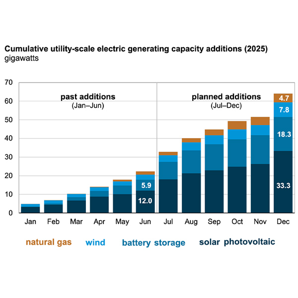 The United States is on track for a record increase in power generation capacity in 2025, the U.S. Energy Information Administration reports.