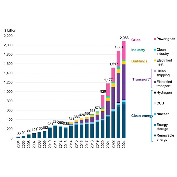 While it was the first time BNEF calculated global energy transition investments at greater than $2 trillion in its annual report, the 11% year-over-year growth was less than in the preceding three years.