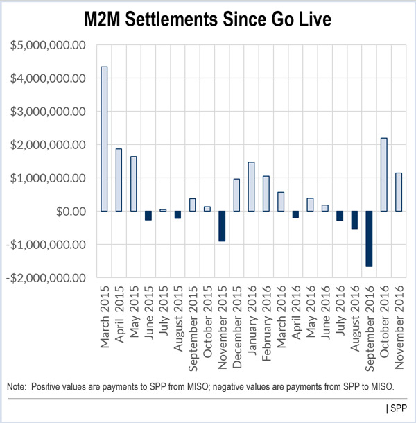 SPP’s market-to-market (M2M) process with MISO again resulted in a large payment to SPP for November operations.