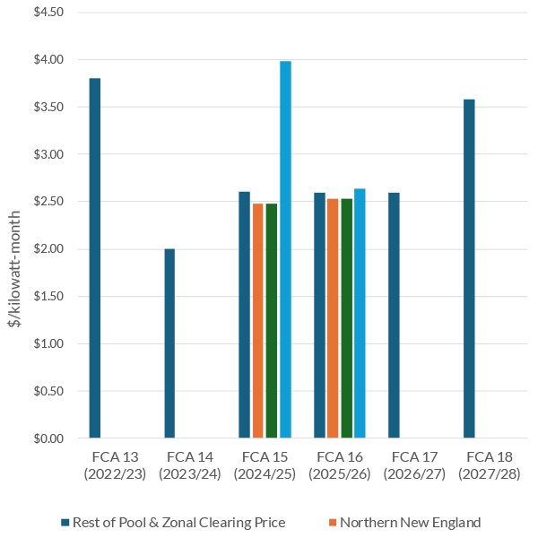 ISO-NE's capacity prices cleared at $3.58/kW-month in FCA 18, a nearly $1 increase over last year.