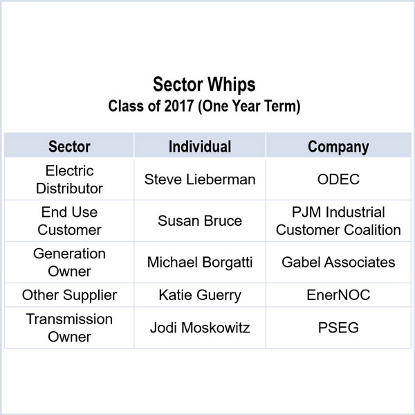 The PJM Members Committee elected new sector whips and the Markets and Reliability Committee discussed fuel-cost policy revisions.