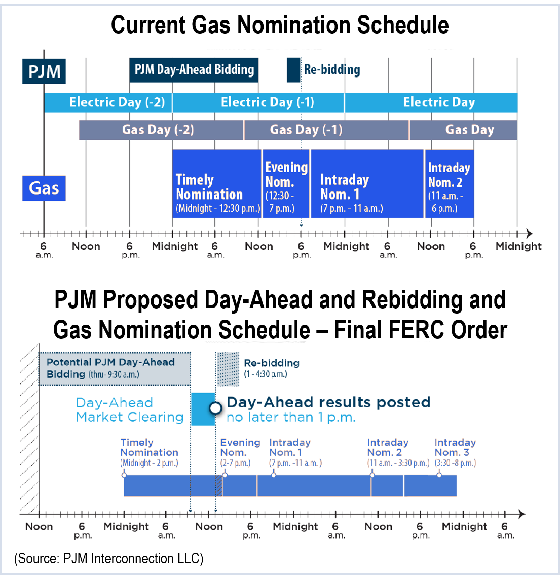 Natural gas pipelines will move their nominating schedules later in the day, and PJM will move its Day Ahead schedule forward enhancing gas electric coordination.