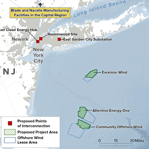 Twenty-five renewable energy projects totaling 6.4 GW have been selected for development in New York, including three new offshore wind farms with a combined 4 GW capacity.