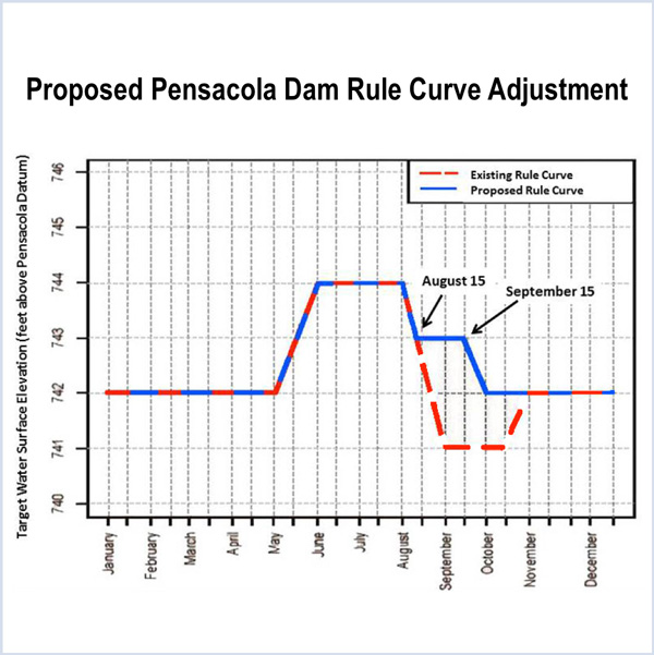 FERC granted Grand River Dam Authority’s request for a permanent 2-foot increase in the reservoir level of the 105-MW Pensacola Project.