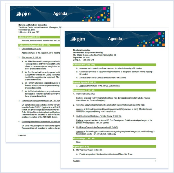 A summary of the issues scheduled to be brought to a vote at the PJM Markets and Reliability Committee and the Members committee Thursday, September 29th.