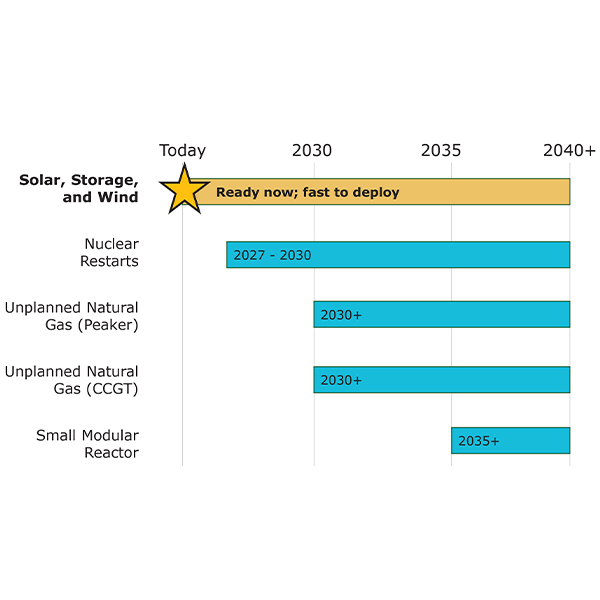 An ACORE report says solar and wind can be deployed cheaply and quickly to meet the country’s rapidly escalating demand growth, while providing support for natural gas and nuclear plants.