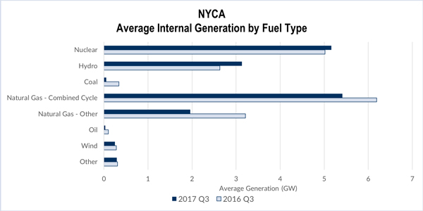 NYISO third-quarter energy prices fell 16 to 30% versus a year ago due to falling electricity demand and lower natural gas costs according to the ISO’s MMU.