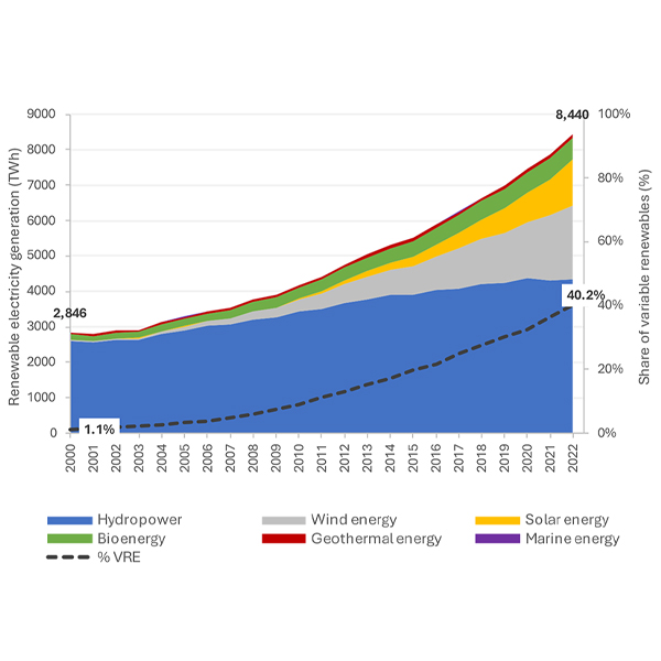 Installed capacity of renewables rose 14% in 2023, the largest one-year jump this century and much higher than the 10% compound annual growth rate from 2017-2023.