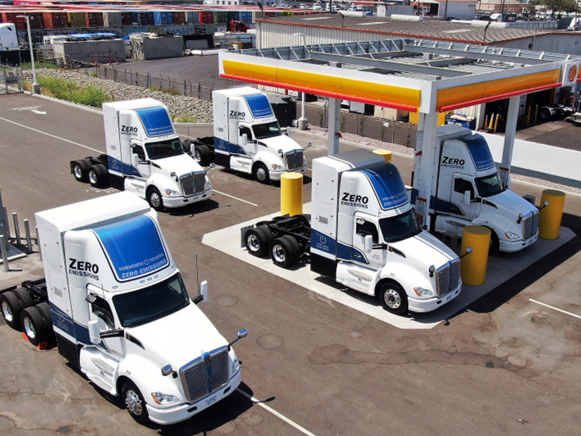 Ten hydrogen fuel cell semi-trucks are beginning a yearlong test of their effectiveness at the Port of Los Angeles.