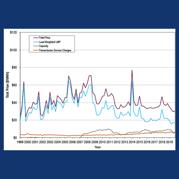 The average load-weighted, real-time LMP in PJM was $27.32/MWh last year, a 28.6% decrease from 2018 and the lowest in the RTO’s 21-year history.