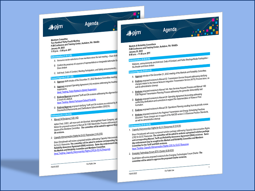 A summary of the agenda items scheduled to be brought to a vote at the PJM Markets and Reliability Committee and Members Committee meetings March 22, 2023.
