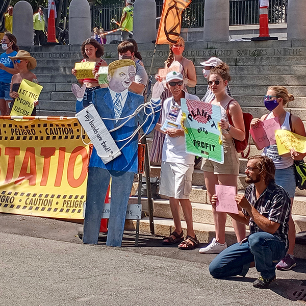 Climate activists mobilized in front of the Massachusetts State House to protest fossil-fuel infrastructure development in environmental justice communities.