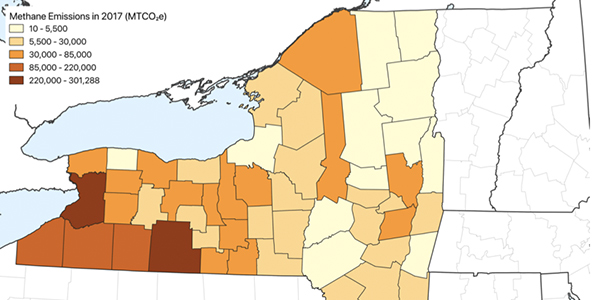 New York’s greenhouse gas emissions in 2015 were virtually unchanged from 1990 levels, according to a study that highlights the role of methane.