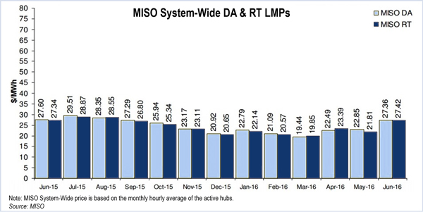 Increased natural gas prices and congestion in MISO South boosted energy prices 23% in June, the RTO reported in an Informational Forum.