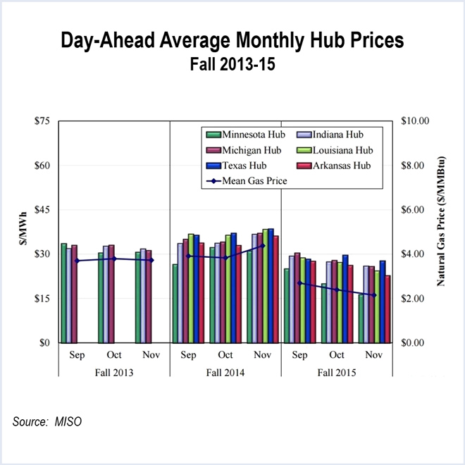 Energy prices hit a seven-year low last March in MISO, while the RTO's filings at FERC are also trending downward this year.