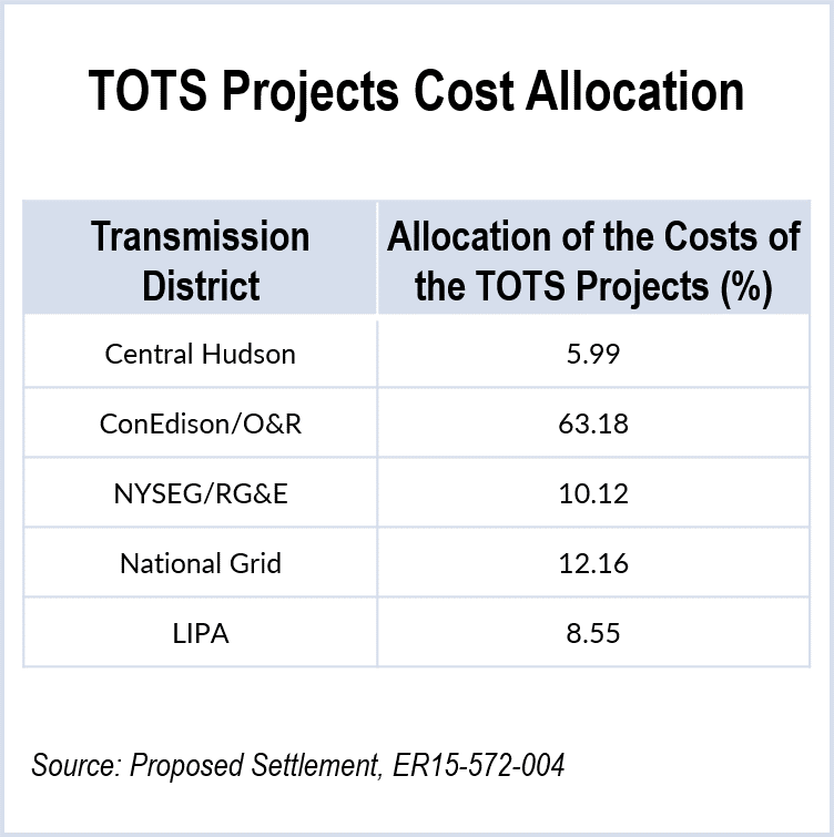 New York transmission owners filed a proposed settlement with FERC establishing the cost allocation and rate of return for three transmission projects.