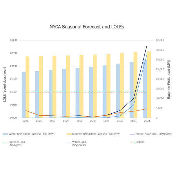 NYISO made significant updates to its assumptions as part of its final Reliability Needs Assessment, which now shows no concern of a capacity deficiency and a loss-of-load expectation of less than 0.1 in 2034.