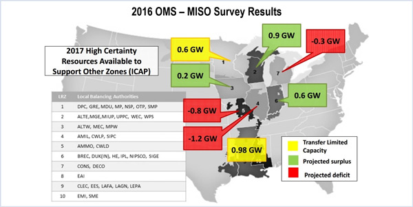 The 2017 Organization of MISO States (OMS) - MISO resource adequacy survey suggests the RTO will have sufficient capacity to meet near-term planning requirements.