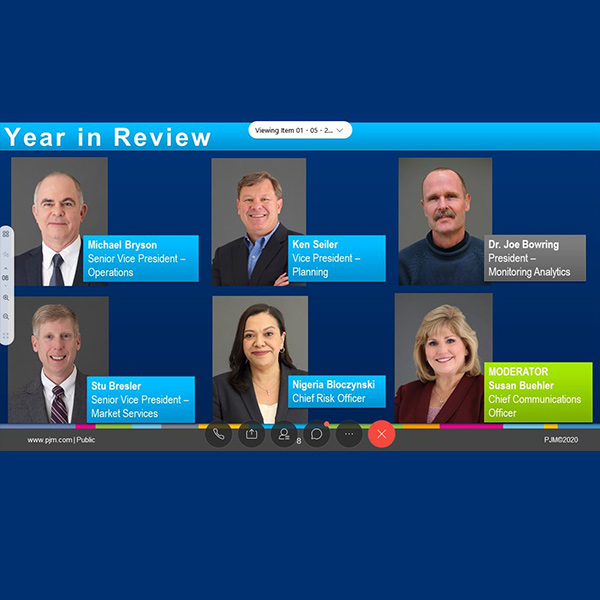 PJM held its Annual Meeting via teleconference, feting Board Member Susan J. Riley and former Vice President of Planning Steve Herling on their retirements.