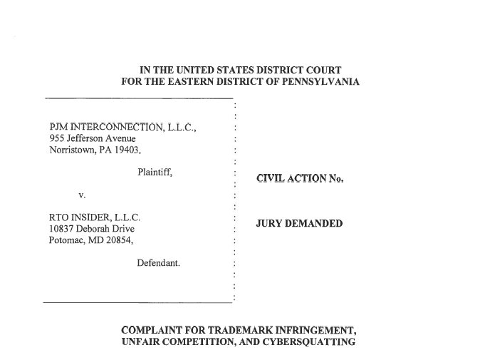 PJM Threatens to Sue PJM Insider for Trademark Infringement.