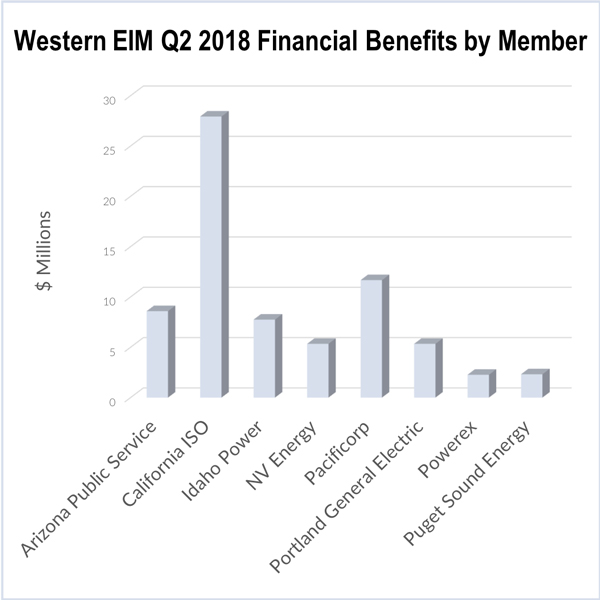 CAISO secured the largest chunk of the EIM’s $86 million in gross benefits during the second quarter as the solar-heavy ISO exported 2.16 million MWh.