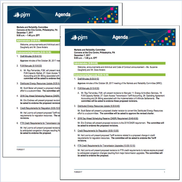A summary of the issues scheduled to be brought to a vote at the PJM Markets and Reliability and Members committees on Dec. 7, 2017.