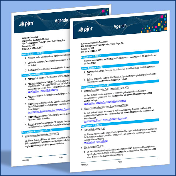 A summary of the issues scheduled to be brought to a vote at the PJM Markets and Reliability and Members committee meetings Jan. 23, 2020.