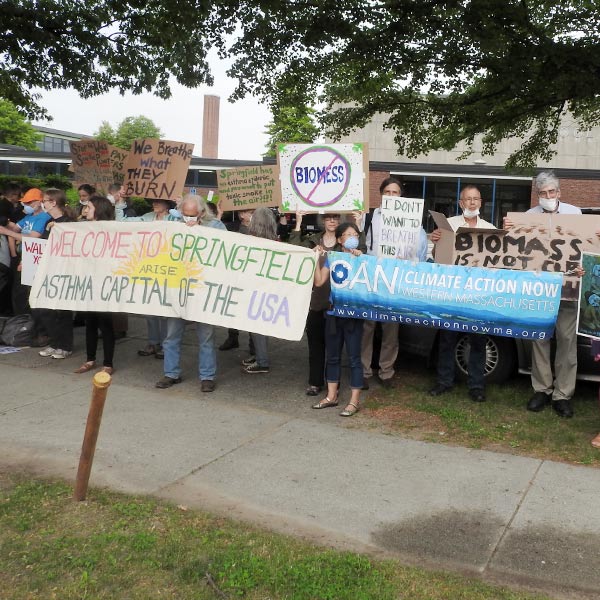 More than 100 people protested a Massachusetts DOER proposal to alter the state’s renewable portfolio standard to include biomass plants.