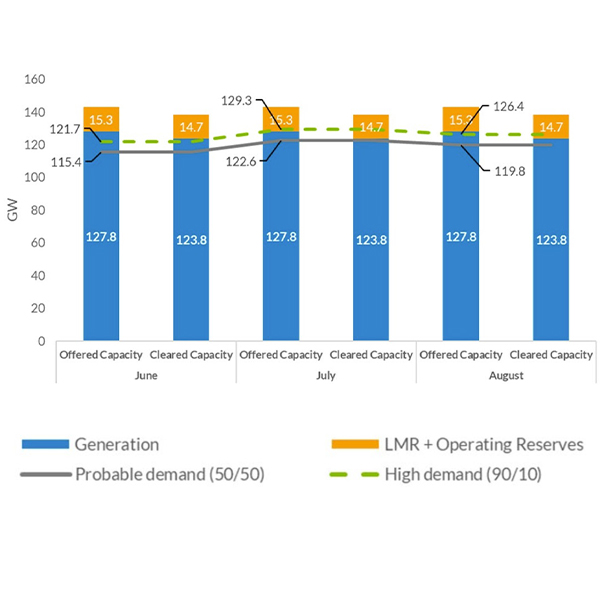 The preliminary results of PJM’s look ahead at the capacity available for this summer and the expected peak loads suggest that about 5.4 GW of demand response could be needed to maintain the 3.5-GW real-time primary reserve requirement.