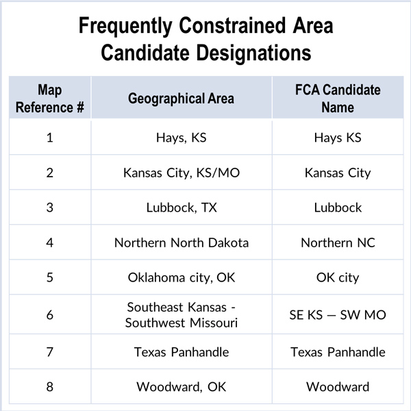 FERC accepted the recommendations of SPP’s Market Monitoring Unit to eliminate the Woodward frequently constrained area (FCA) in Northwest Oklahoma.