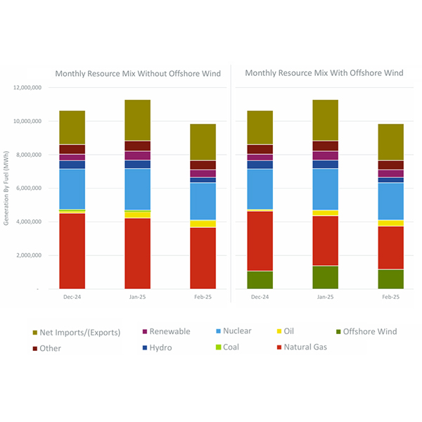 The addition of 3,500 MW of offshore wind capacity would have reduced ISO-NE energy market costs by about $400 million over the past winter, according to a recent study by Daymark Energy Advisors.