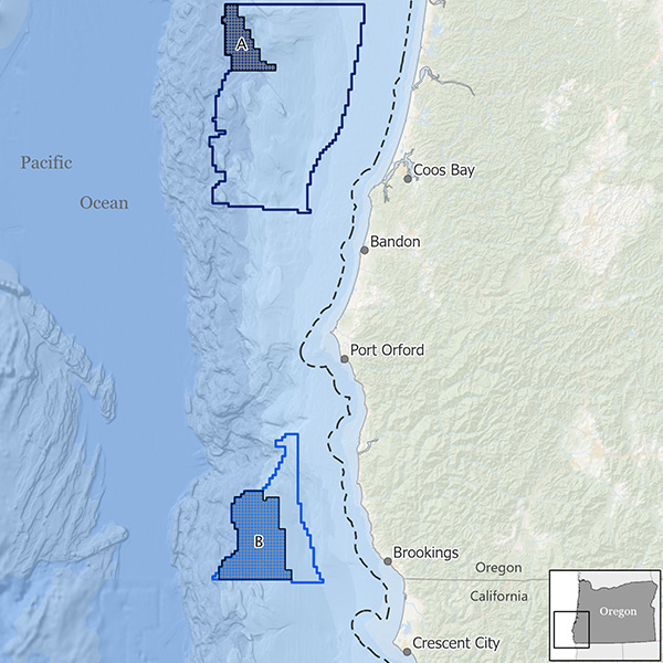 The U.S. Bureau of Ocean Energy Management selected two draft wind energy areas off the coast of southern and central Oregon.